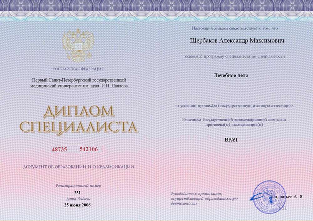Первый Санкт-Петербургский государственный медицинский университет им. акад. И.П. Павлова (Лечебное дело)